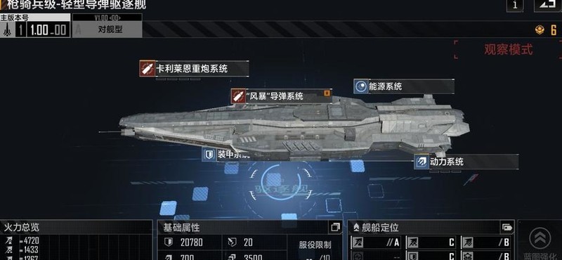 第三位介绍的是枪骑兵。作为一艘驱逐舰,枪骑兵整体属性全面提升,配备双武器,优先锁定敌方驱逐舰进行攻击,单发伤害突破百点,具备较强的输出能力。定位偏向高爆发的远程射手,但生存能力较弱,较为脆弱。加点建议主加伤害属性。前期可先提升小型主炮以增加攻速,副炮则强化伤害,后期资源充足时重新洗点优化技能配置。出战时尽量保持满编阵容。前排推荐搭配装甲型战舰富贵300,在四至五级关卡中,仅靠这两类舰船便可顺利推进,不过面对五级精英敌人时,前排可能会受到较大损伤。