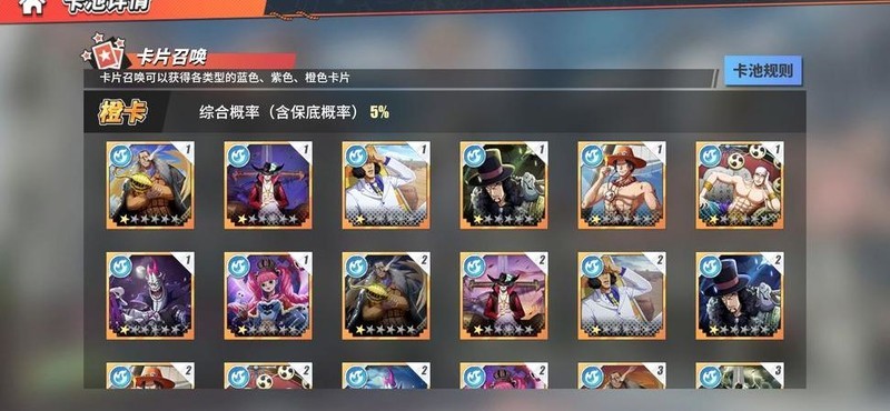 卡池仅出战意橙卡,激斗与究极卡需商店购买。