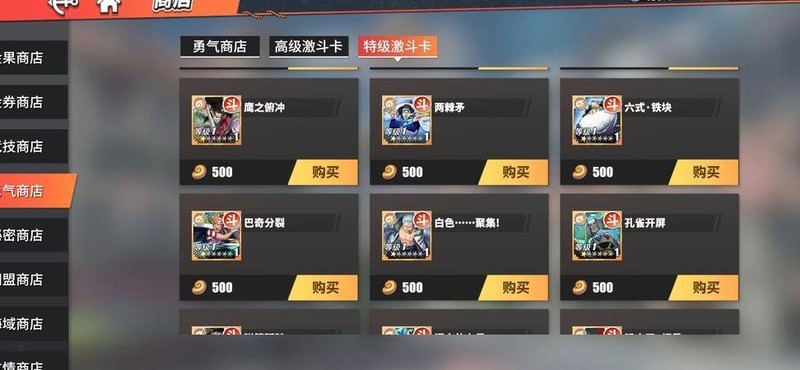 在卡片商店可购入金核心,优先用于强化战意卡,切勿初期投入激斗奥义卡。虽见效较慢,但能有效节省资源,为后期发展奠定基础。