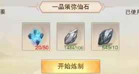 1至3品须弥仙石所需材料:混沌星尘五十、月冥石百、万年铁精十。