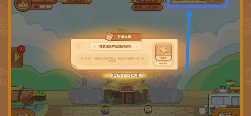 再次进入淘气开放农场后,别忘了点击猫猫图案消耗体力。