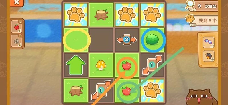 当卡牌显示单箭头时,表示箭头方向藏有目标物,类似简化版扫雷,游戏后期也需依赖运气判断。