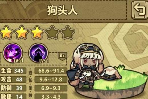 狗头攻击力成长偏低,技能偏辅助但效果一般,输出与辅助能力均不突出,培养价值较低。
