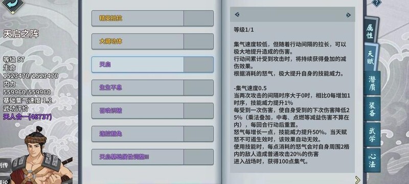 天启:装备西洋宝甲,具备血战效果,可抵御多段伤害,自动回复怒气。怒气提升显著增强技能威力,消耗怒气释放无视格挡的范围伤害。
