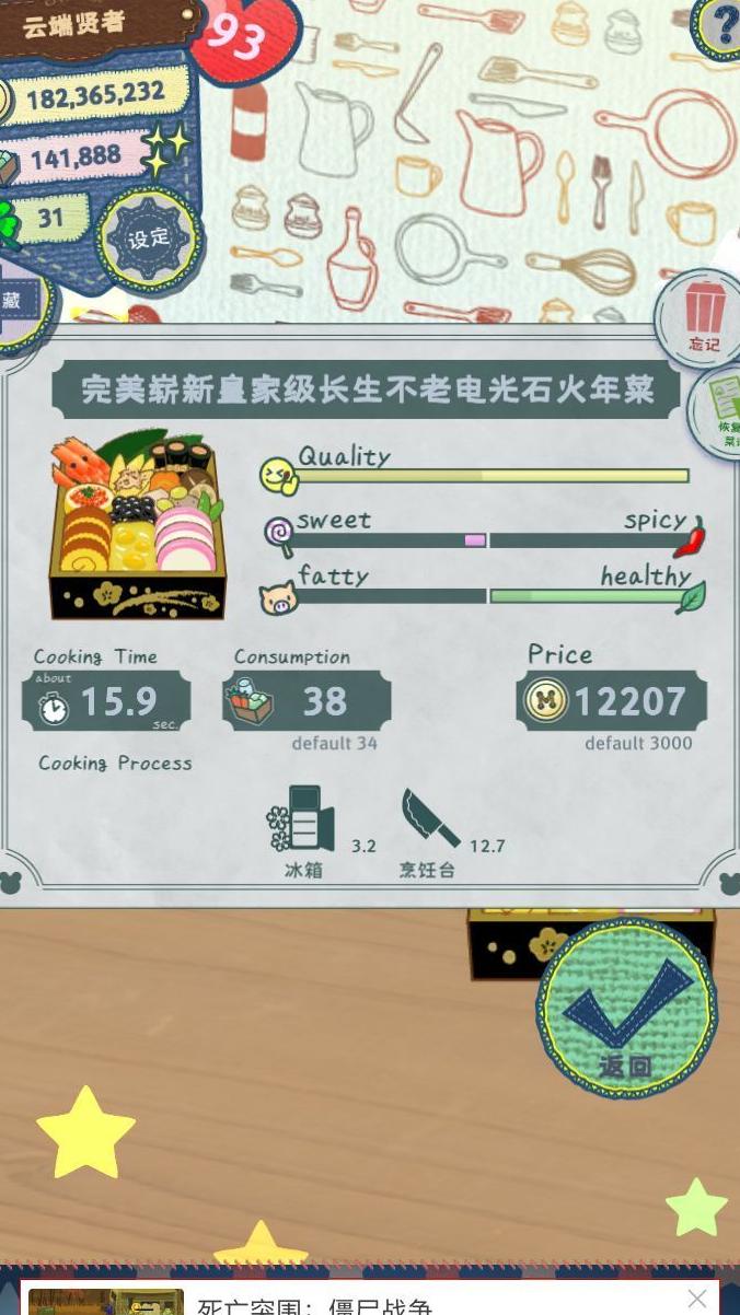 店铺菜单只需上架一道完成度最高的菜品,选择符合当季流行趋势且契合顾客口味的菜肴,更易获得星级提升。星级增长依赖前台挂机,顾客结账时系统自动判定并更新星级。