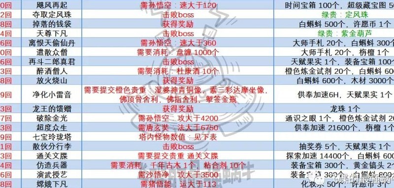 每通过一关即可获得奖励,部分关卡设有特殊事件,完成可获取使徒升级道具或额外资源,具体奖励内容详见下表。