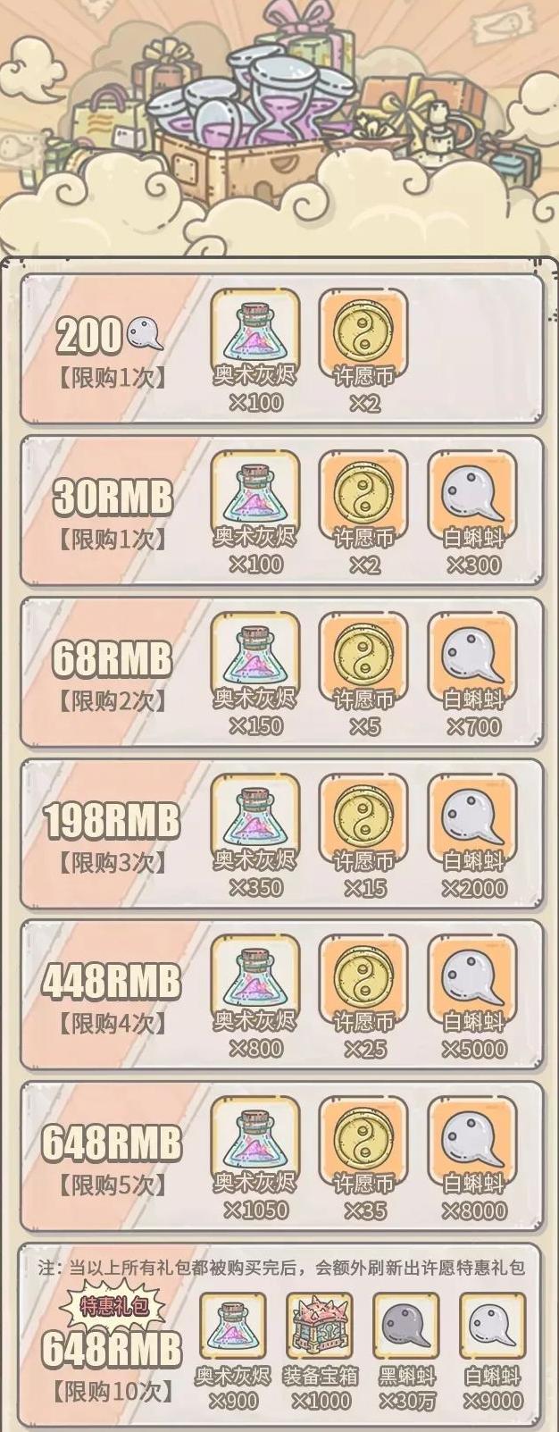 活动期间将开启白蝌蚪礼包,位于活动界面入口,共设五档礼包供选择。