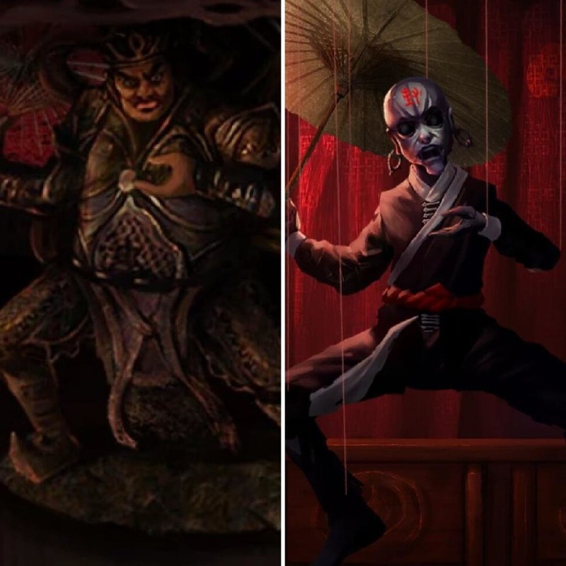 依照场景一神像姿态摆放木偶,撑开伞,解除场景三的机关。