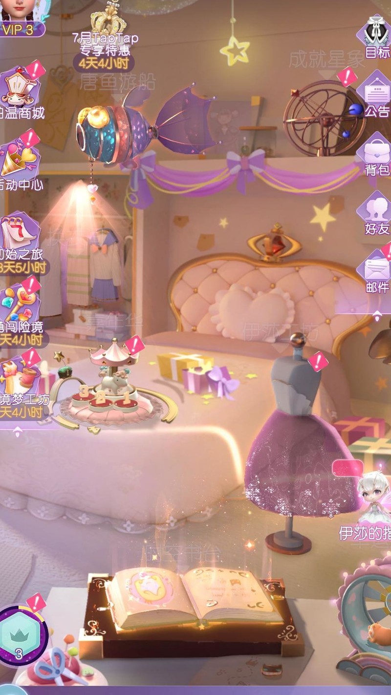 主线内容由一系列独立书籍构成,每本书需用阅读券开启,获取方式尚不明确。各故事彼此独立,互不干扰,可自由选择感兴趣的主题进行体验。起初我不知如何选择,便按顺序开启了玛丽的故事,但欧洲古典时期的繁复裙装并不符合我的审美偏好。第三天在游船探索时偶然发现阿拉丁,被其吸引后立即解锁,才意识到自己更倾心于轻盈贴身的服饰风格。
