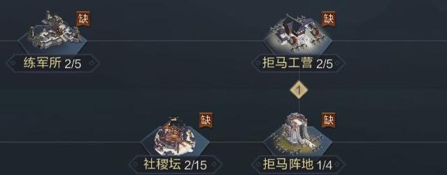 八级可建造社稷坛以扩大占地,还可建造拒马阵地提升拒马等级。