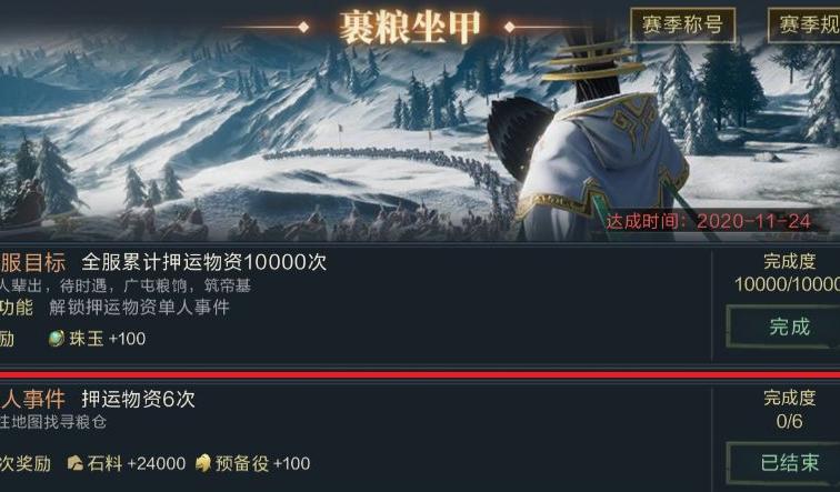 留意赛季任务,每日可进行6次石料押运,总计可获得14.4万点石料,该资源可超出仓库上限存储。