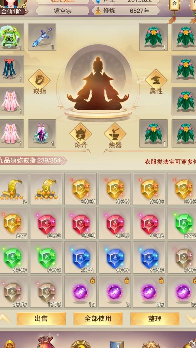 目前主要精力放在刷神界地图上,从神1到神6均有涉及,尤其集中于神4和神5。通过刷图获取材料,用于提升修为与神通等级,普通一跳战力已达到约53.5万。半收益模式下手动刷取欲界、极乐、血魔、魔神及寒冰等图。渡劫丹方面,已积累20颗七品和10颗八品。仙袍与神袍也陆续制作了不少。背包中物品较为充裕,尤其是各类石头,多来自神魔奖励和开箱所得,由于尚未开启紫府,暂时占用着背包格子。