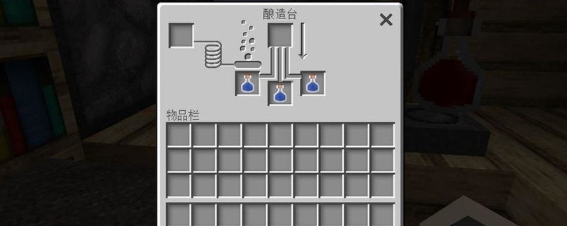 制作药水需先合成酿造台,方法是:打开工作台,将一根烈焰棒放在上层中间位置,下方三格各放置一块圆石即可完成。