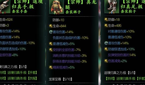 三个坑各配一件真龙装备,另配两件返璞归真装备。