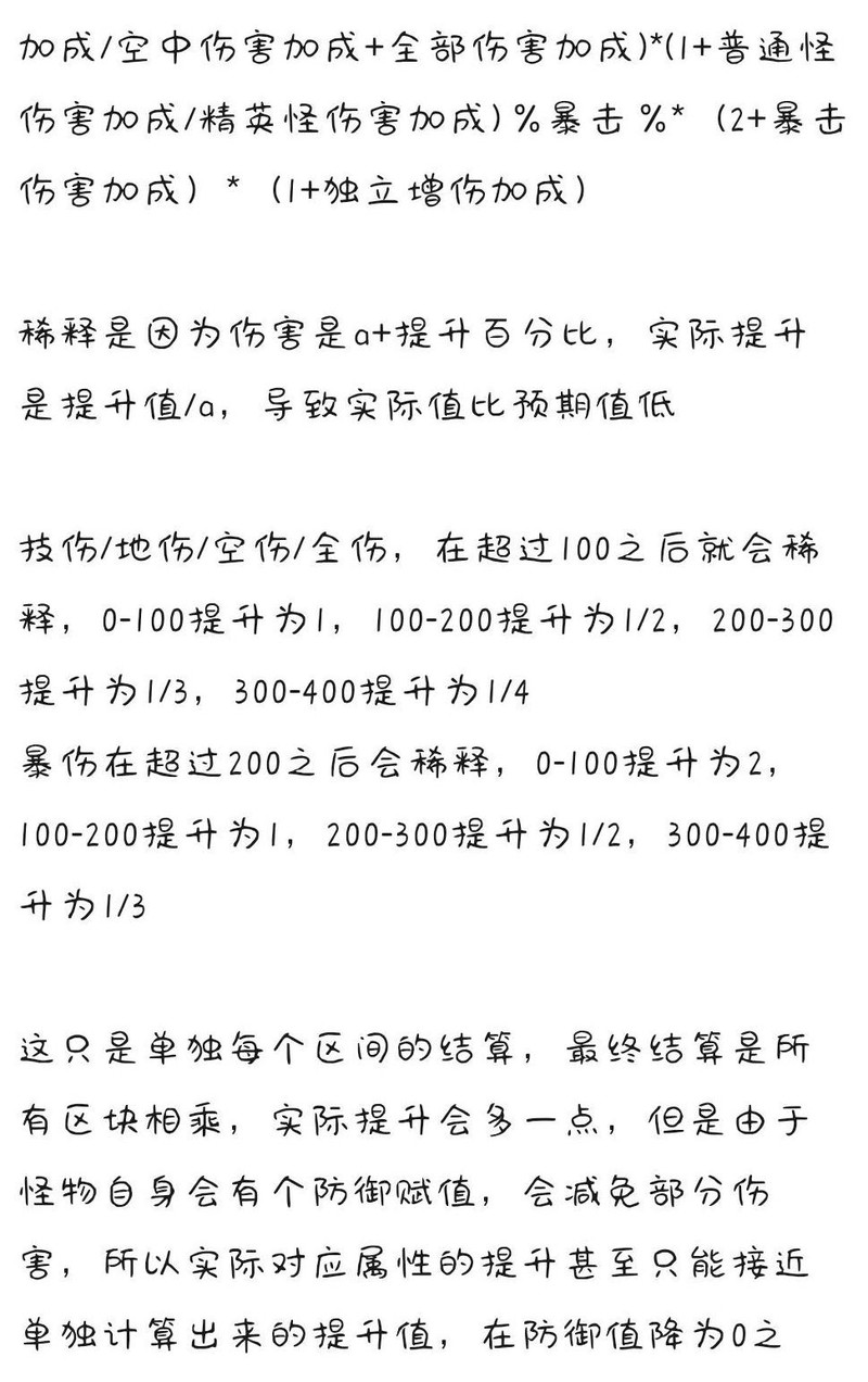 伤害稀释可类比导数原理,即伤害增幅虽递减但总量仍在提升。此时优先补充其他属性收益更高。简言之,应根据公式短板,优先填补最欠缺的属性值,以实现整体效益最大化。