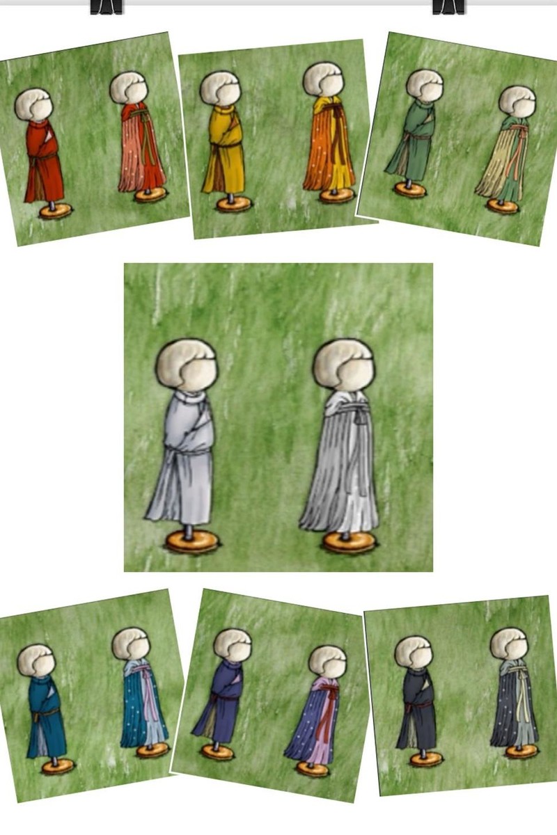 缺胯男袍可由齐胸襦裙搭配红黄蓝绿紫黑白任一色剪裁而成。
