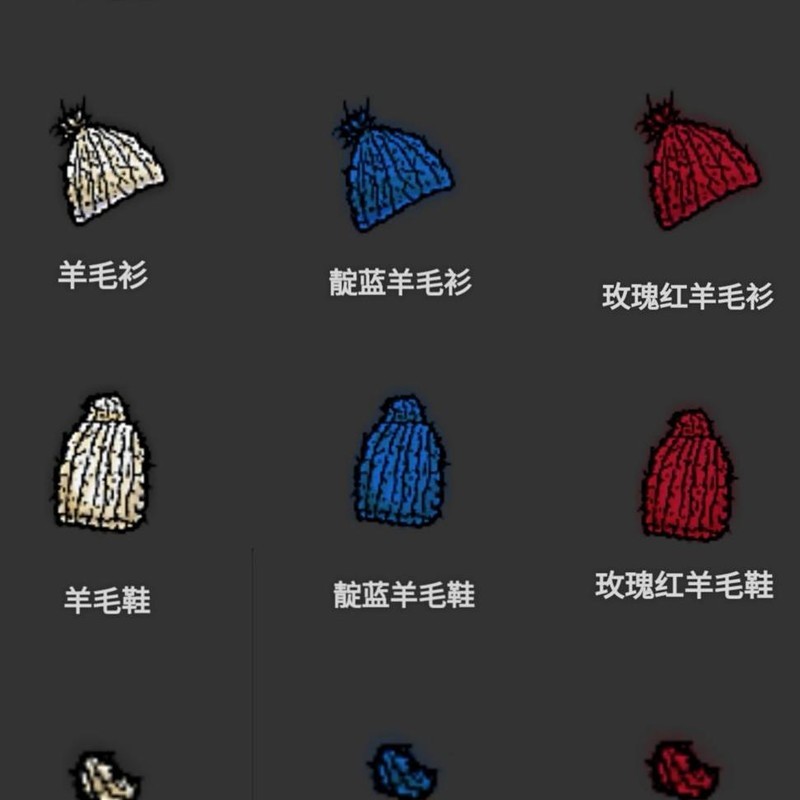 羊毛、兔皮、海狗皮衣,狼皮帽、蛇皮靴及果实靴可持续5小时,旗袍3天后变为破旧套装,破旧套装30分钟后自动消失。