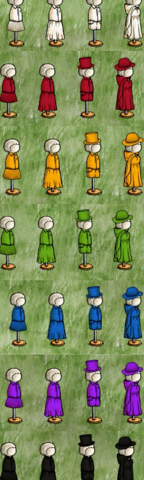 圆顶礼帽由两块毛毡缝制而成,可选用红、黄、蓝、绿、紫、黑、白等颜色。