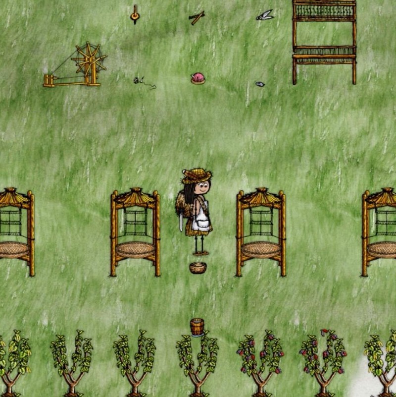 用织布机配合两个巨型羊毛线球和剪刀,可制成一匹布。