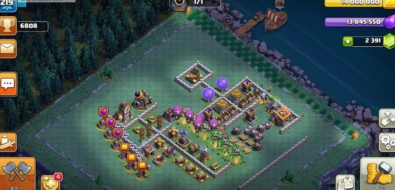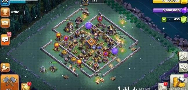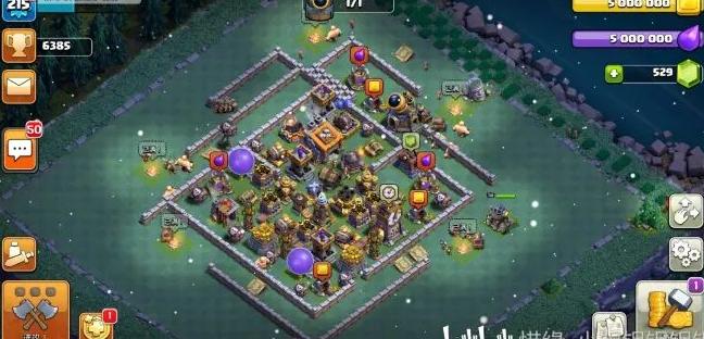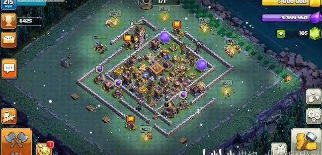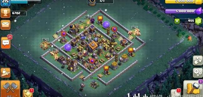 大本营居中,非主流布局,后方多重城墙阻断弓箭手偷袭路线,凭借引导设计,对皮卡单位具备极强防御力。
