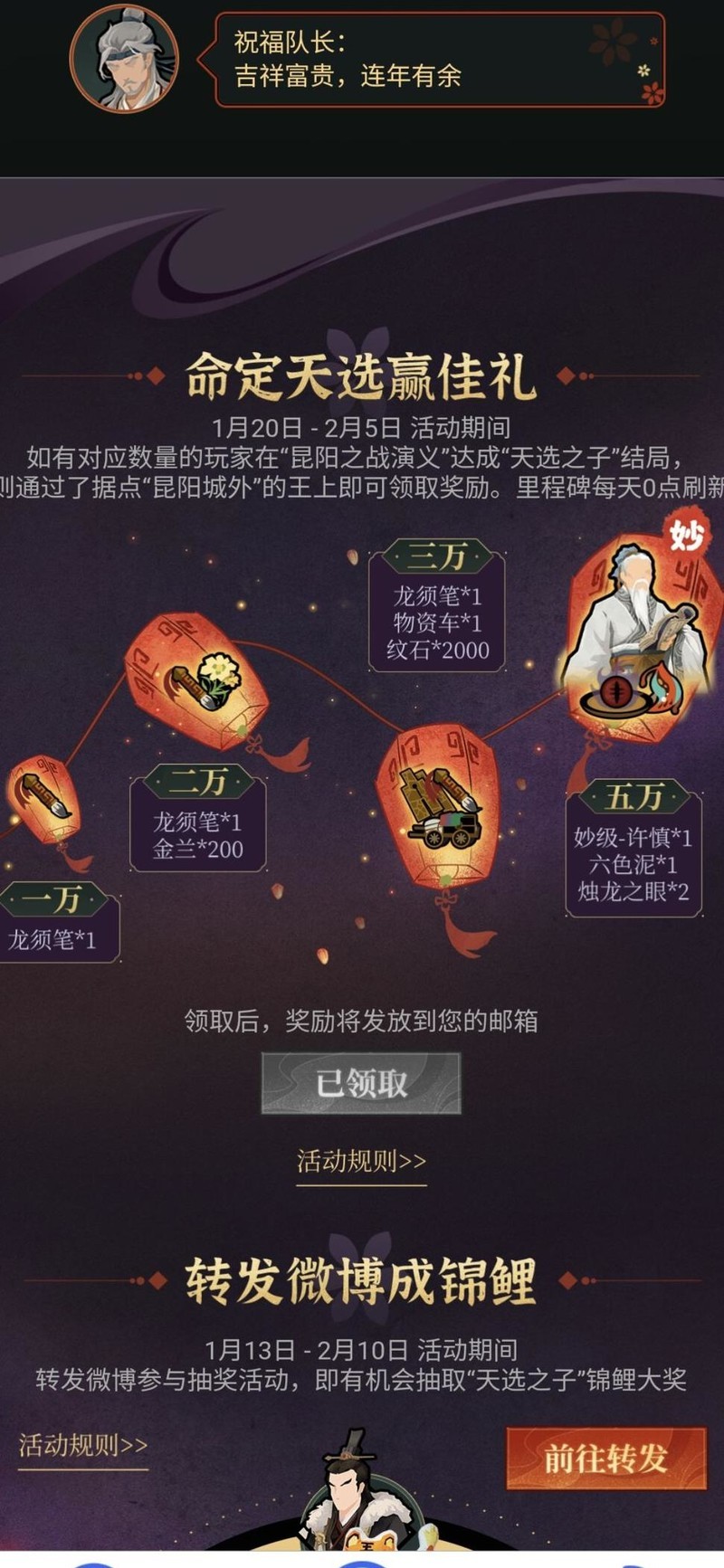 新年活动期间,参与战役演义昆阳之战并抵达昆阳城外据点即可获取奖励。