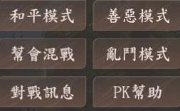 游戏界面左上角人物头像旁可开启PK模式,共提供四种不同选择。