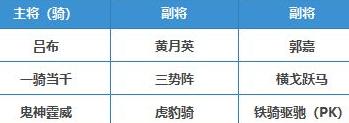 选择兵种时应优先考虑骑兵,因其战法虎豹骑能显著提升吕布突击战法的发动概率,大幅增强全队输出能力,该战法不可或缺,正是三势吕阵容的核心所在。