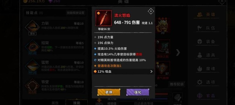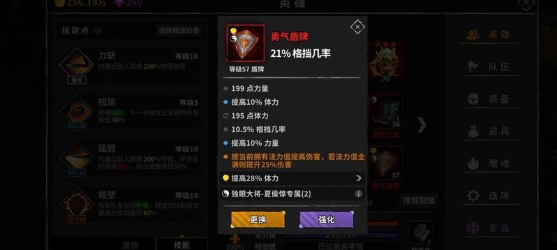 夏侯惇可选凶神头盔,提升格挡并附带火焰增伤效果。
