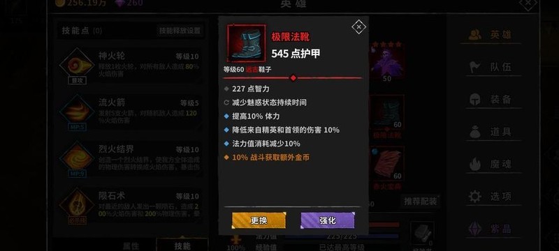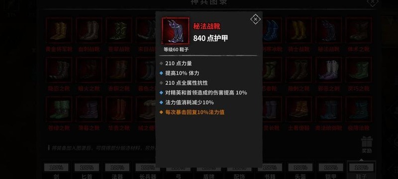 鞋子附魔优先选择减法力消耗,随后洗练火焰增伤属性。