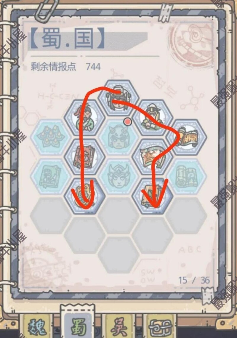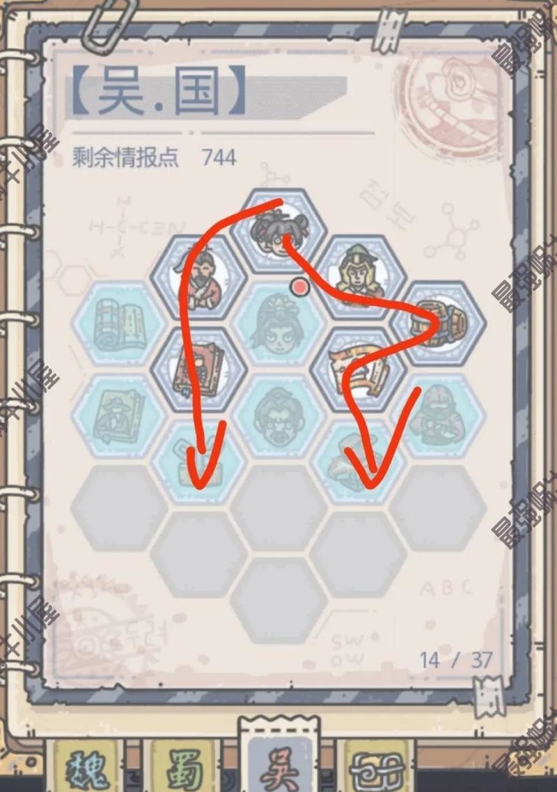 这三张地图无先后顺序,按箭头指示加点即可。武将登用后可随意献祭队友。登用时优先选孔融,升几级后他会提供食物用于回血,后期点满还能获得绿色贵重品。