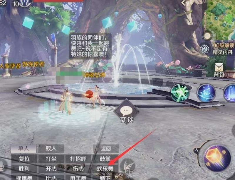 积羽城坐标185·305·217,向神秘女神起舞可自动触发任务。