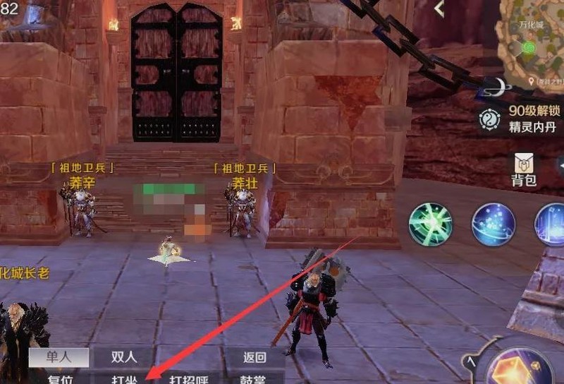 万化城坐标64·317·114,位于两名士兵之间打坐可自动触发任务。