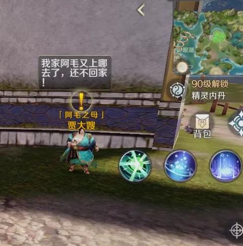 前往通天湖坐标93·312·32处,寻找五行灵石接取任务。