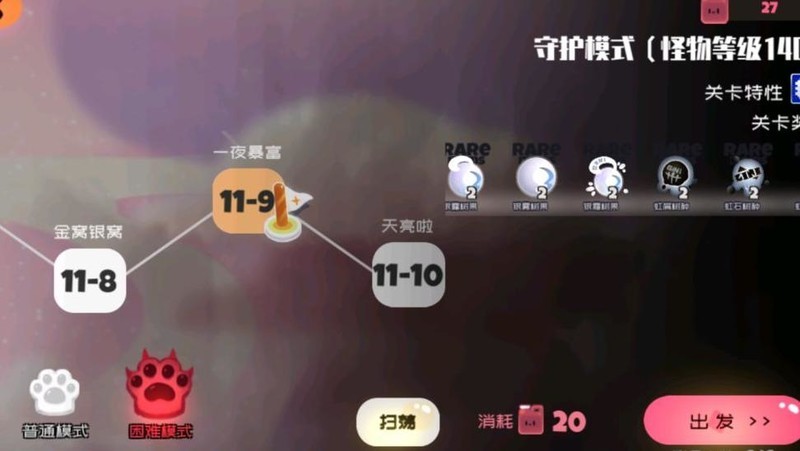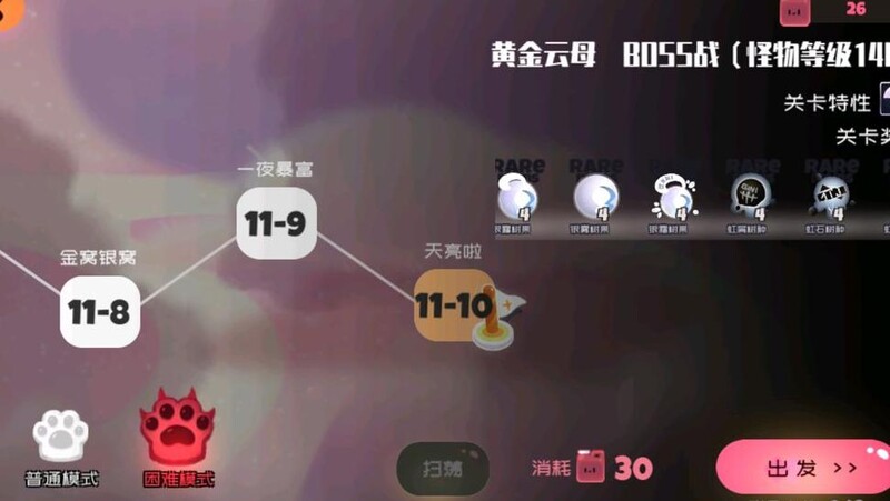 在完成第11-1至11-9关卡后,通过普通和困难模式的重复挑战已积累一定资源。在此基础上,每日只需通关三次困难模式的11-10关,即可逐步集齐培养一只新七星角色所需的全部材料,进度稳定且可行。