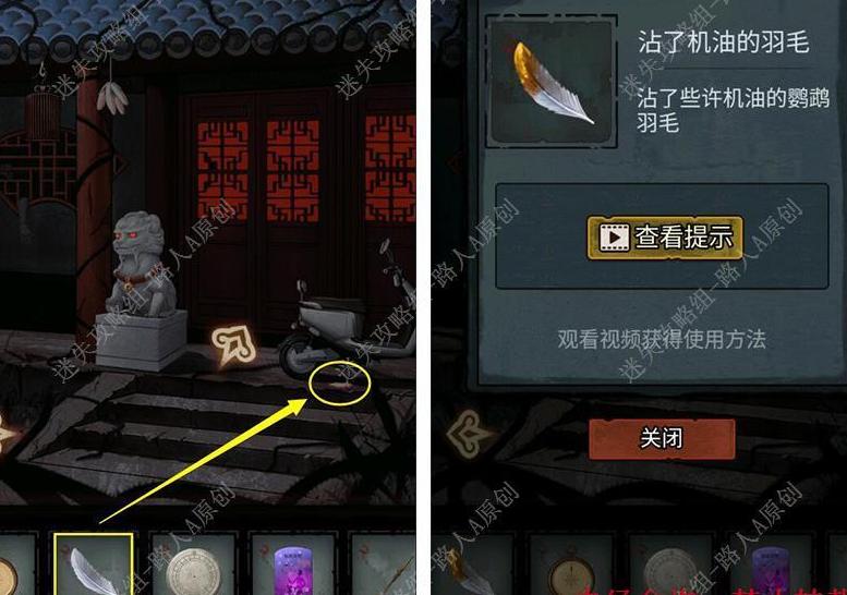 用沾有机油的羽毛涂抹琴轸,成功润滑后取得电动车钥匙。