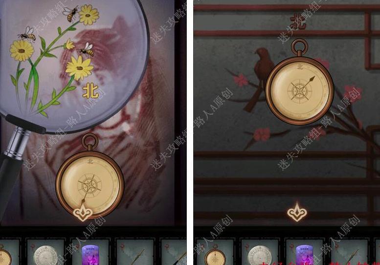 使用放大镜仔细观察画像,再用指南针寻找并获取关键线索。