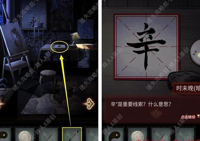 翻看纸条背面,用毛笔在田字格中书写,获得线索辛。