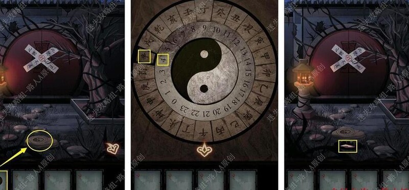依据田字格与日晷盘的提示,将黑色勾玉置入圆盘,旋转数字4对准辛位,按下辛,触发机关,随后点击被掩埋的盒子即可解开谜题。