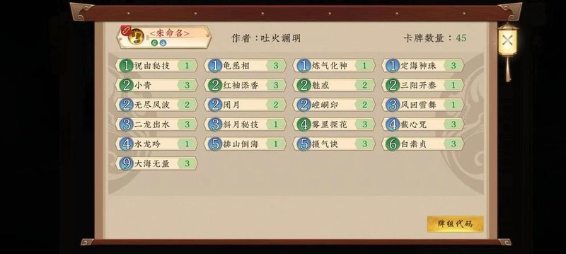 这套卡组的构建初衷是为了克制水土流派,因多次败于其手而深入反思。针对水土拆装能力弱的特点,采用珠子与崆峒印扩大资源优势;鉴于其场攻不足、依赖生灵驻场,选择放弃场面争夺,转为空城策略,借助红袖添香快速发育;面对其修行为滞后,通过高效过牌迅速跳修;对其大招频出,则提前备好闭月与截心应对。
