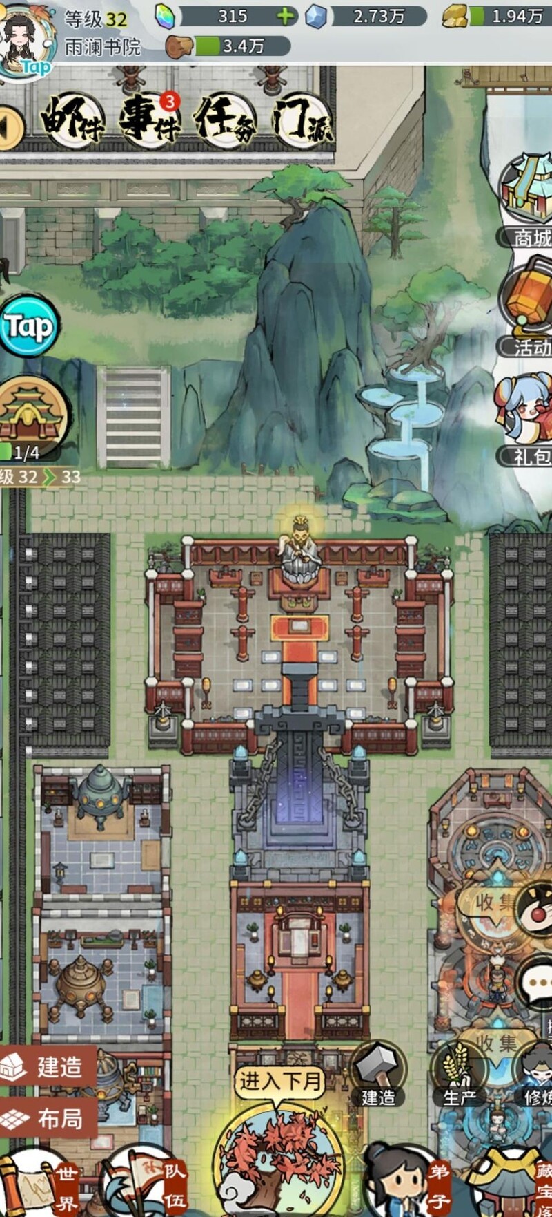 门派建筑需与道路相连才能运作,所谓接通是指建筑周围八个格子中至少有一格铺设了道路。即便该道路未连接主干道,只要紧邻建筑,即可确保其正常运行。因此,在布局时可利用边角空隙放置一小段路,既能有效节省空间,又能保障所有建筑顺利启用。