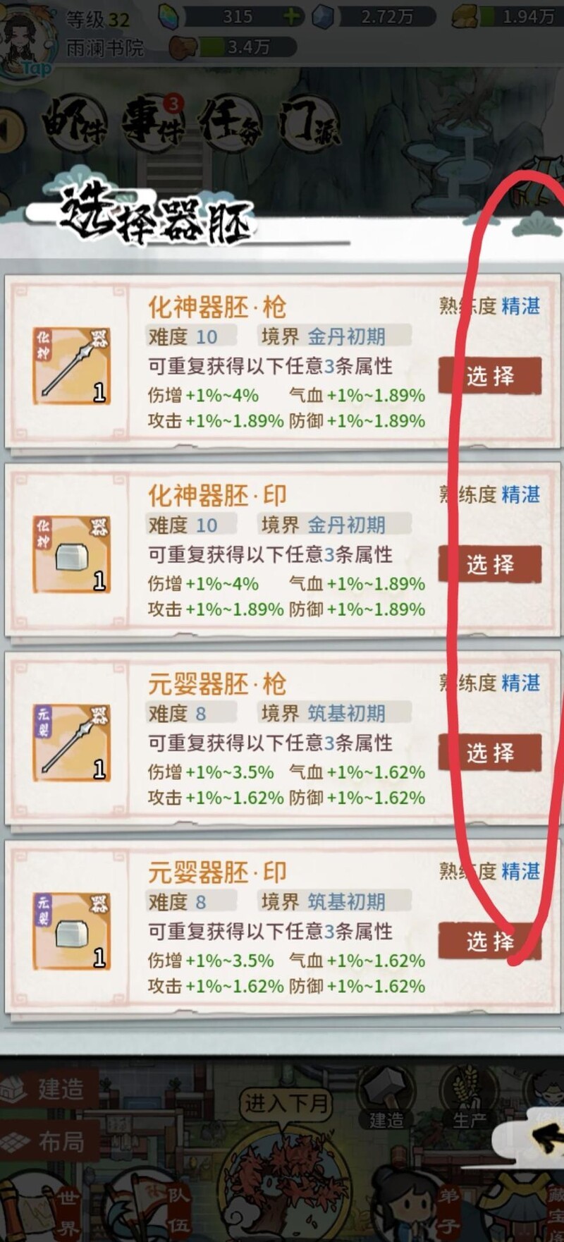 炼丹、炼器、制衣皆属巧匠技艺,十与十一、十五与十六是关键分界。地图上标注的+1炼丹或+1炼器等增益效果,应优先给予已有15级相关技艺的弟子,否则进入炼虚期后,炼器仅15级将难以应对后续挑战。
