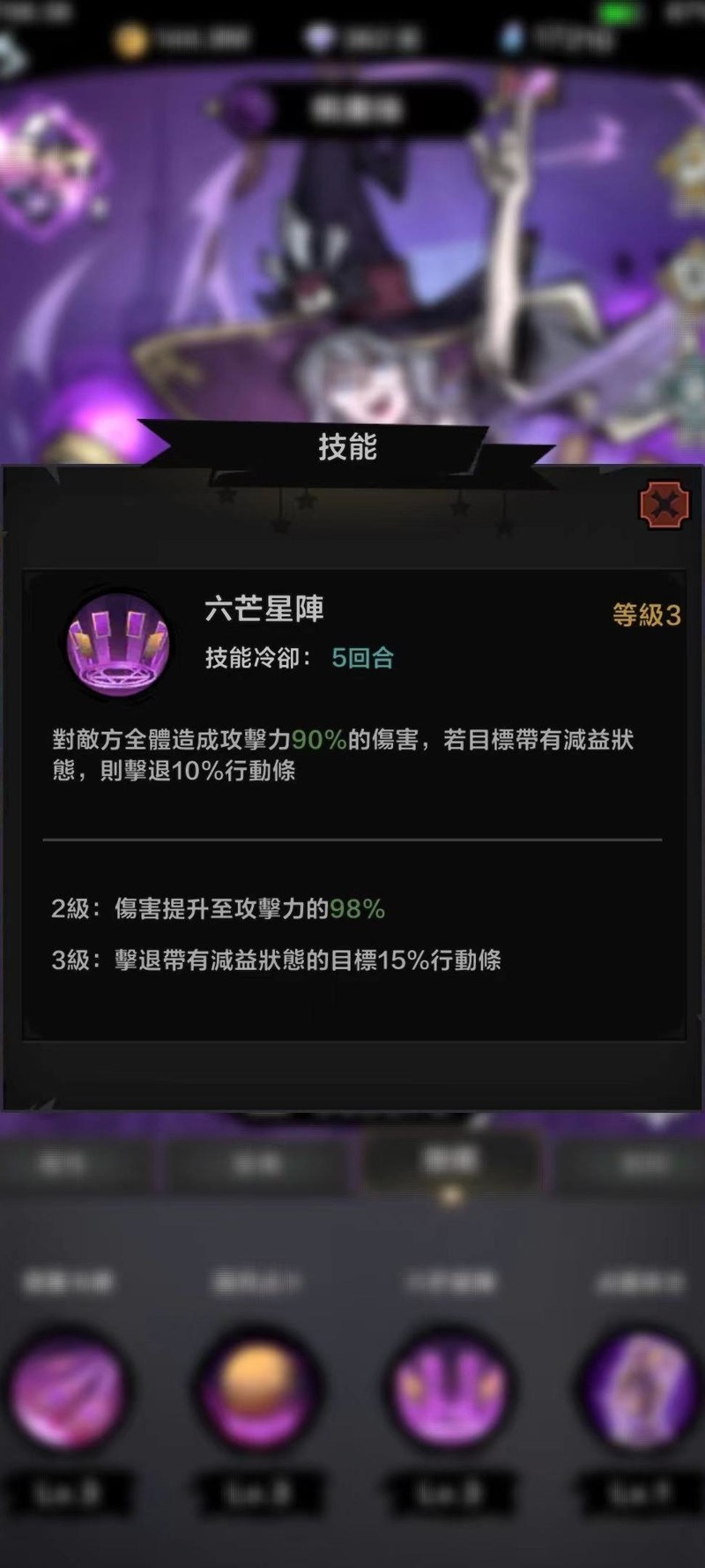 例如光灰提升群体攻击,以及新暗嫦娥的群体增伤,均为强力技能。后期推图若输出不足,可考虑携带其作为辅助增益角色使用。