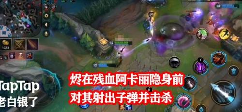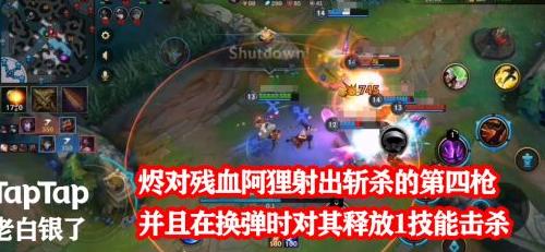 阿狸也未能幸免,烬将伤害最高的第四枪留给残血的她,并配合一技能成功将其击杀。
