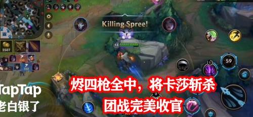 团战接近尾声,敌方仅剩卡莎仓皇逃窜。烬从容蹲伏,肩扛长枪,高喝:天不生我戏命师,下路万古如长夜,狙来!话音未落,四发子弹接连迸发,尽数贯穿卡莎心脏,最后一击更是在塔下将其终结,整场战斗就此画上完美句点。