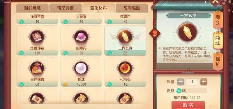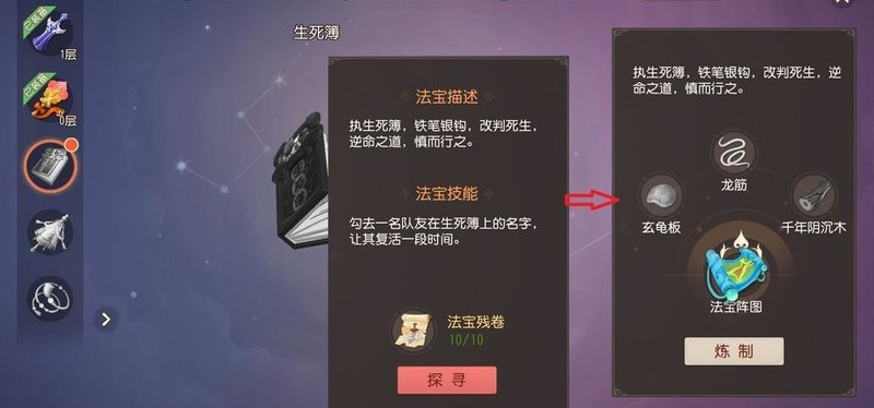 法宝六层后升级需三界玄灵,可通过商城或交易行向其他玩家购买获得。
