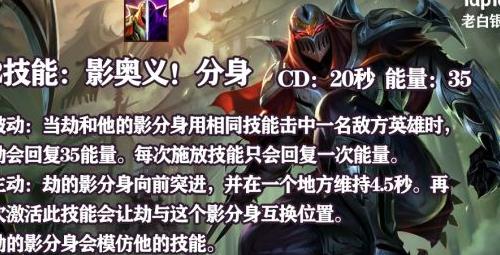 在4.5秒内,分身会复制本体的1、3技能,并与本体技能伤害叠加,从而实现高额爆发输出,这正是劫造成巨额伤害的关键所在。