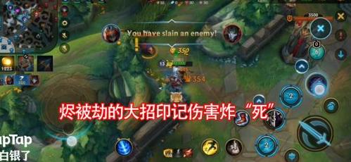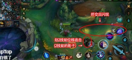 劫迅速突进到烬面前,释放三技能减速,紧接着开启大招,瞬间发动猛烈攻势。