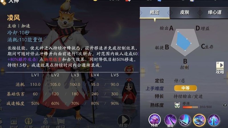 凌风的技能包含逃跑、赶路、杀人及关键的免控效果,其中逃跑即加速,需留意其最后一击会决定式神的朝向与落点位置。