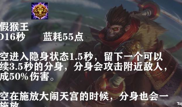 猴子的二技能真假猴王释放后,本体进入隐身状态,同时留下一个无法移动的分身。该分身可进行普通攻击,并能与本体同步释放大招。技能常用于逃生或规避关键伤害,在团战中配合大招时,分身也能提供可观输出与控制效果,提升整体作战能力。