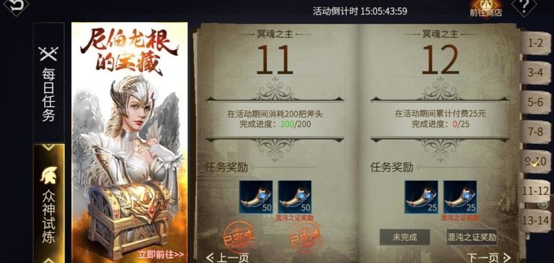 累计消费满50元的玩家,开局可开启一次唤灵之匣,并在众神试炼商店兑换一名金色英雄。多余战斧用于开启献祭之箱。注意,蓝色品质英雄可通过进阶升为金色。